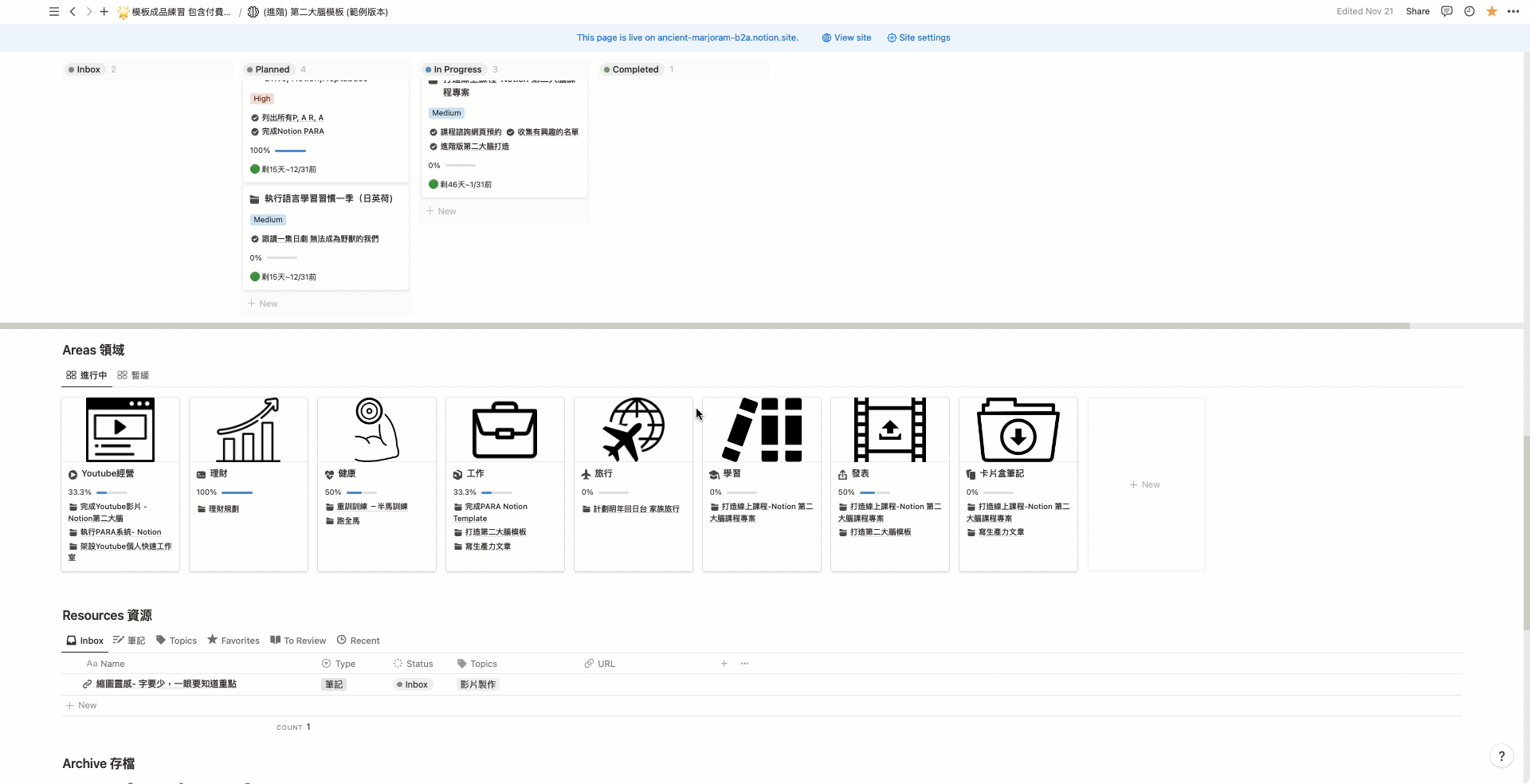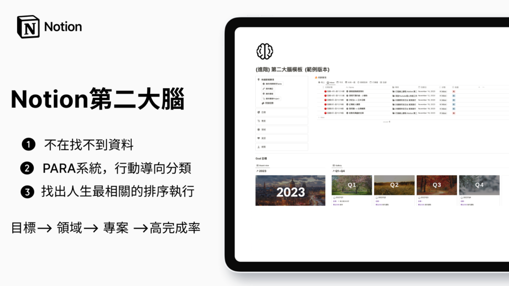 Notion第二大腦模板 (行動導向,構築您的第二大腦 ,打造人生管理系統)