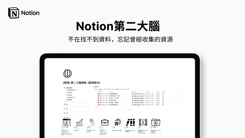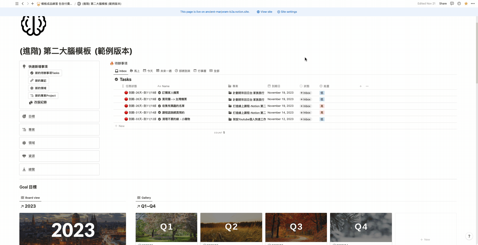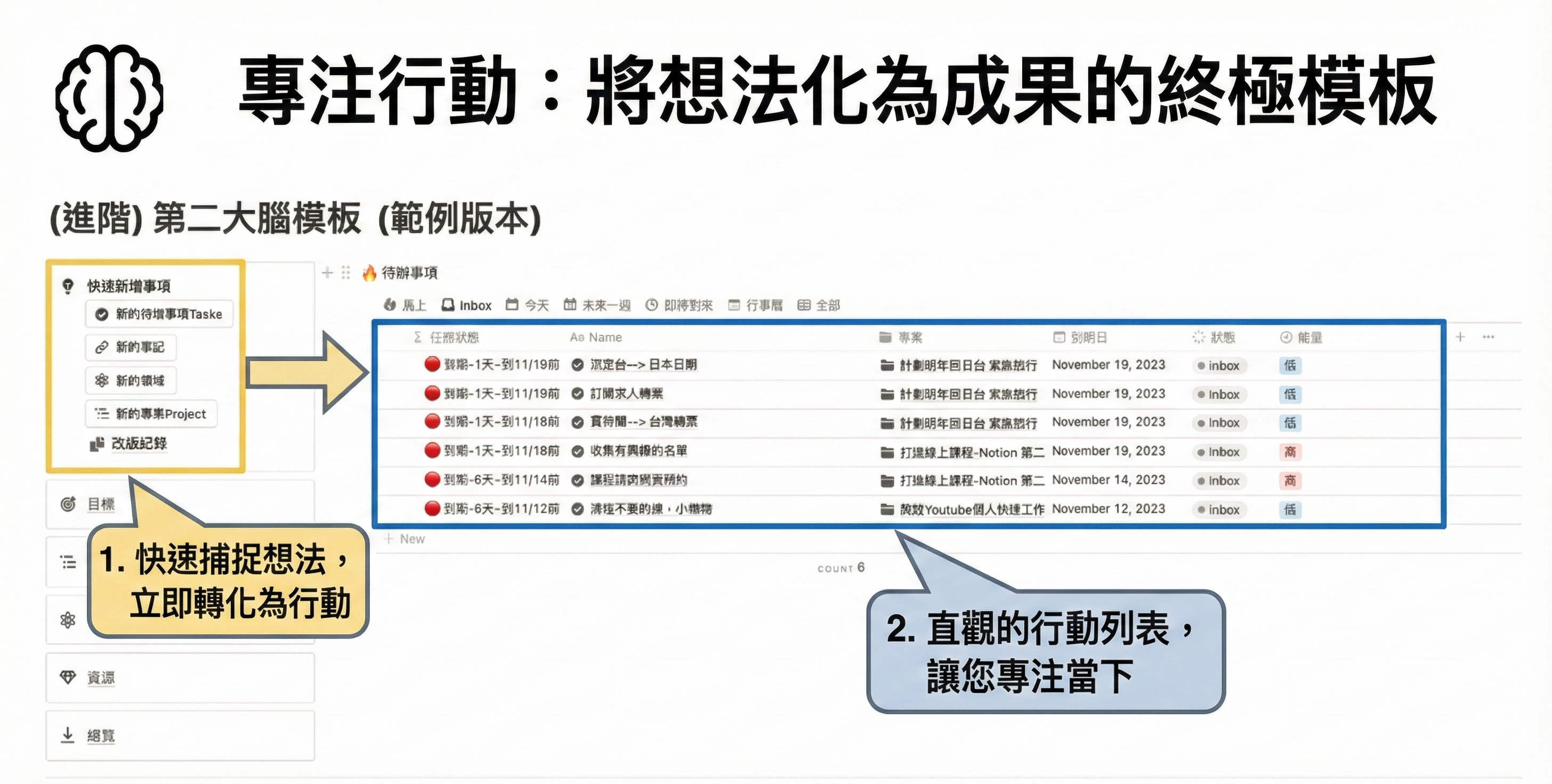 Notion第二大腦模板 (行動導向,構築您的第二大腦 ,打造人生管理系統)