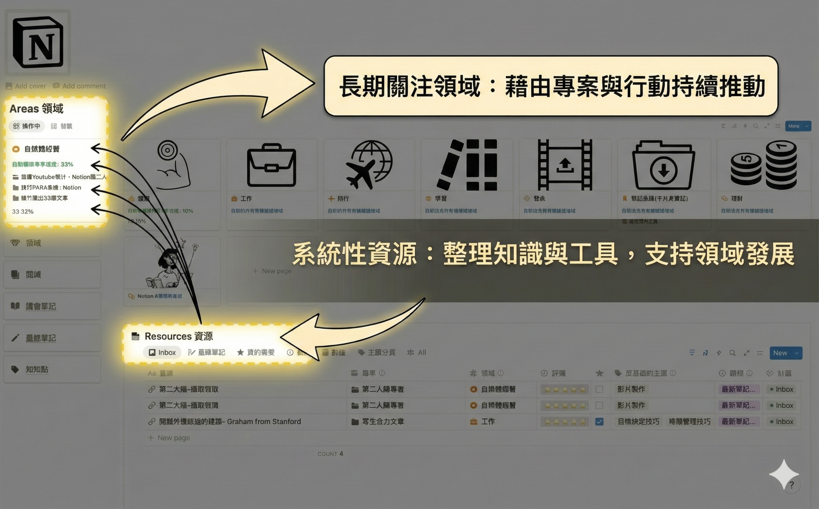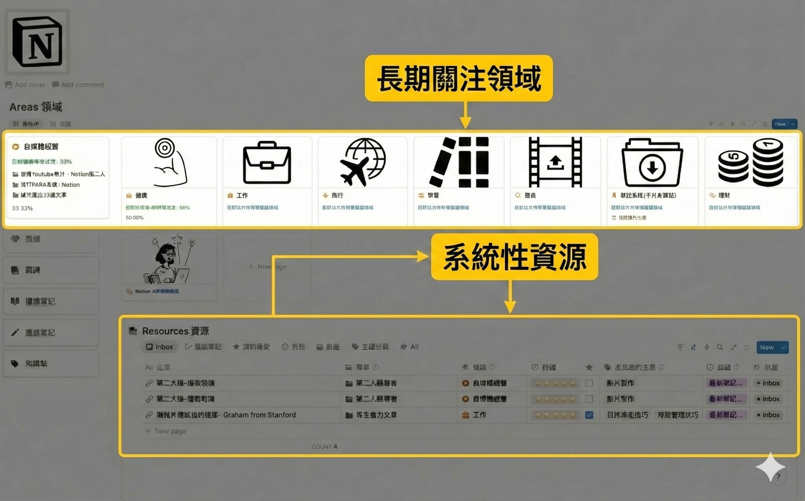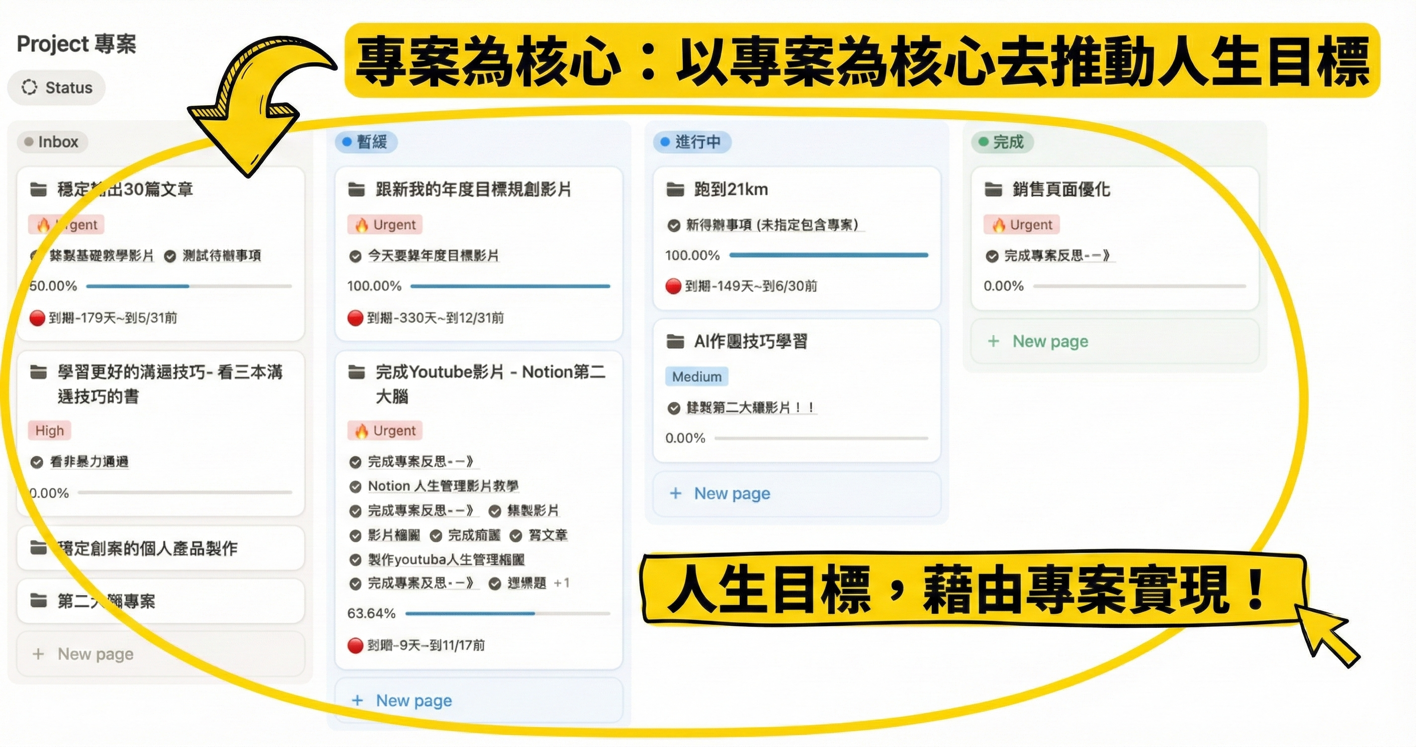 Notion第二大腦模板 (行動導向,構築您的第二大腦 ,打造人生管理系統)