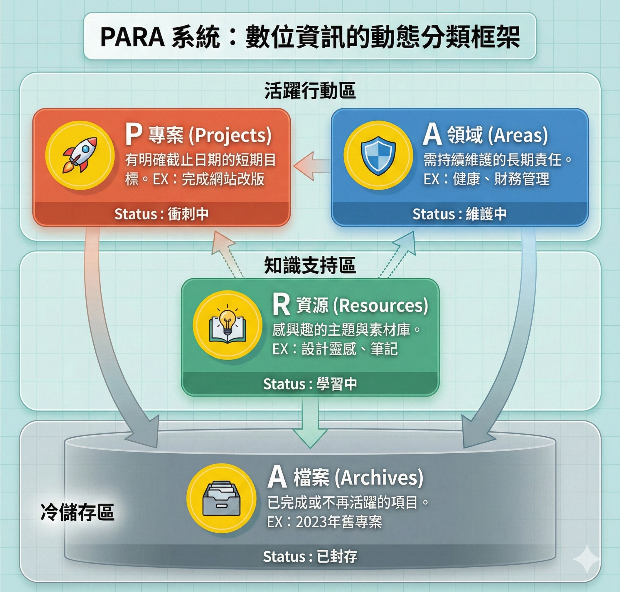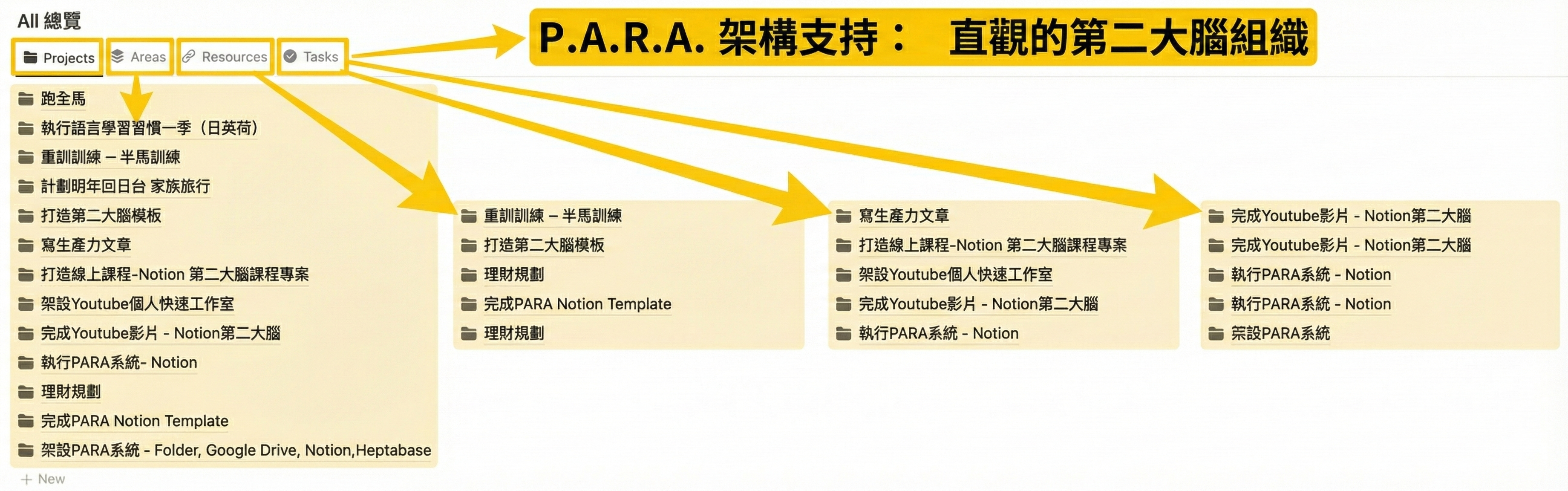 架構支持:利用P.A.R.A.方法學來組織您的第二大腦,使其更加直觀和有結構。